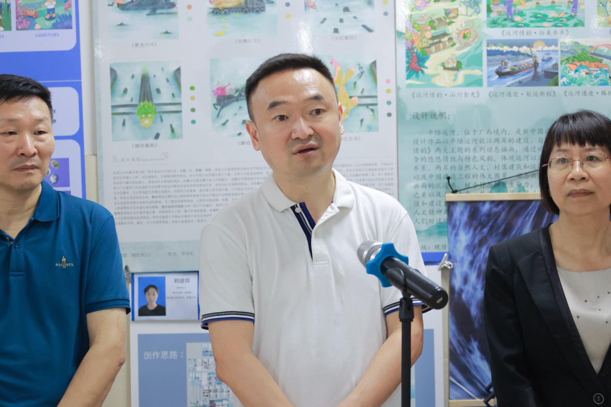 苗剑宣布展览开幕。他在致辞中表示,此次展览既是教学成果的集中展示,更是学校服务国家文化强国战略的生动实践,希望青年学子以艺术创作为载体,为平陆运河文化传承与创新注入新活力,肩负起新时代文艺工作者的文化使命,通过创造性转化赓续历史文脉,助力传统艺术在当代绽放新光彩。
