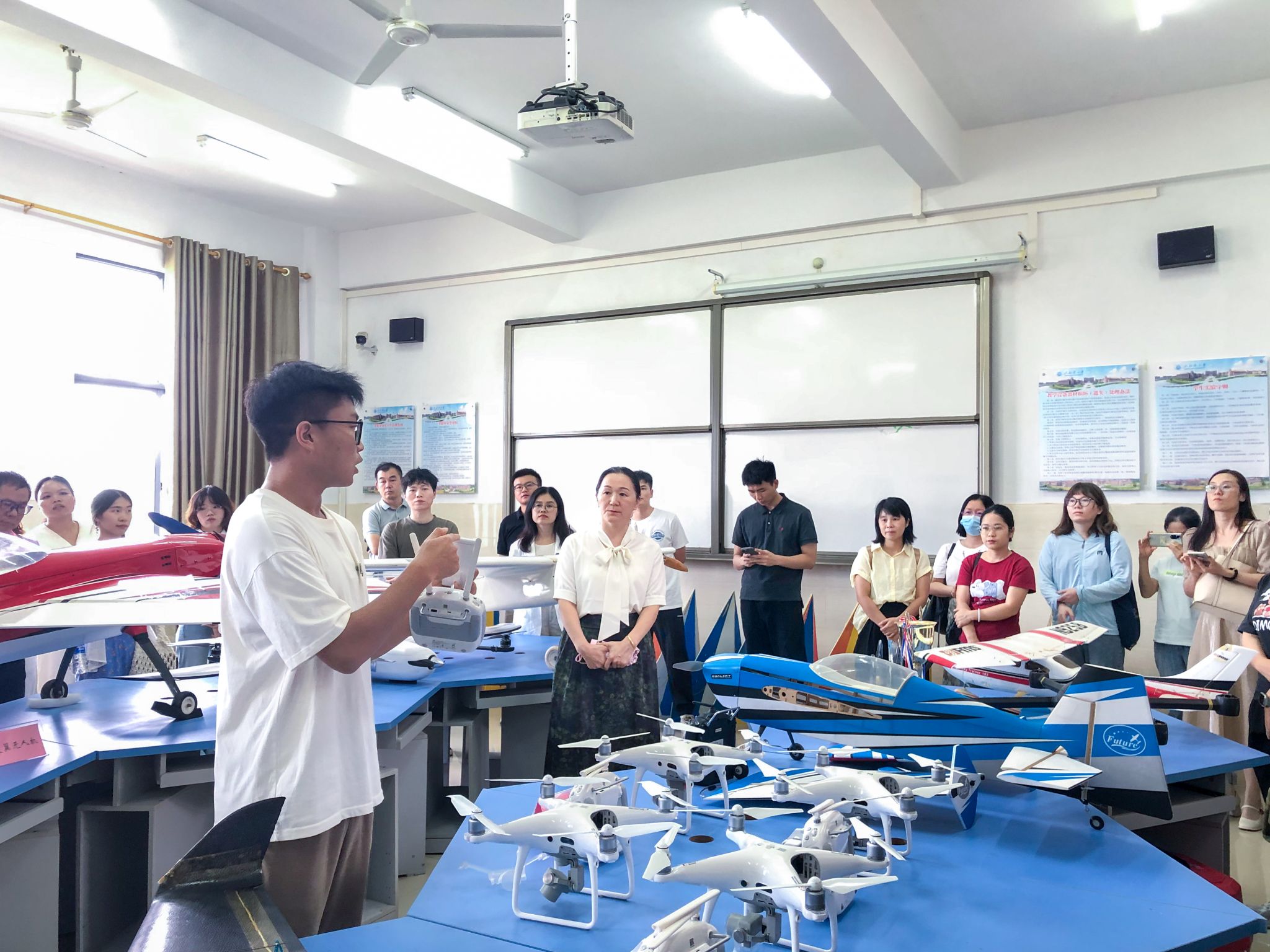 教师们参观资源与环境学院遥感重点实验室(无人机展厅)