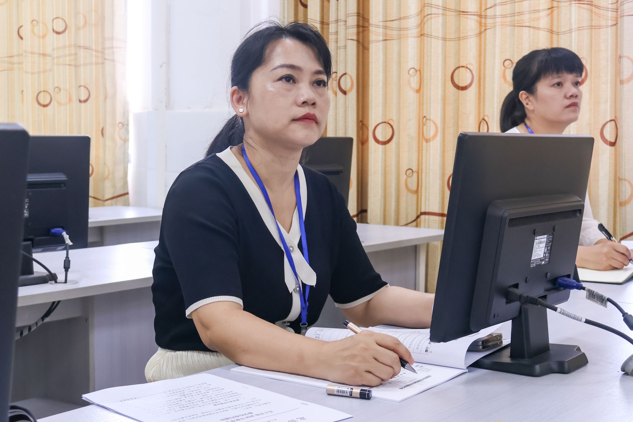 自治区纪委监委驻kaiyun体育网页登录入口纪检监察组组长,校党委常委、纪委书记谢立平(右一)深入课堂一线听课