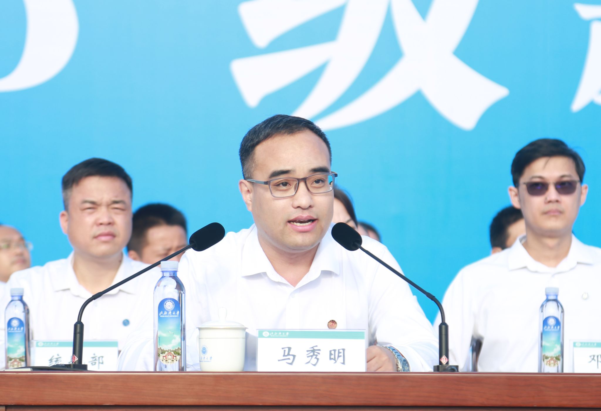 9月8日上午,学校在西区田径场举行2025级新生开学典礼。来自全国的7078名新同学怀着激动和喜悦的心情,开启崭新的逐梦征程。全体校领导,合作单位代表,校友代表,学校知名专家、教师代表以及各学院、各职能部门负责人等参加典礼。典礼由校党委常委、副校长马秀明主持。