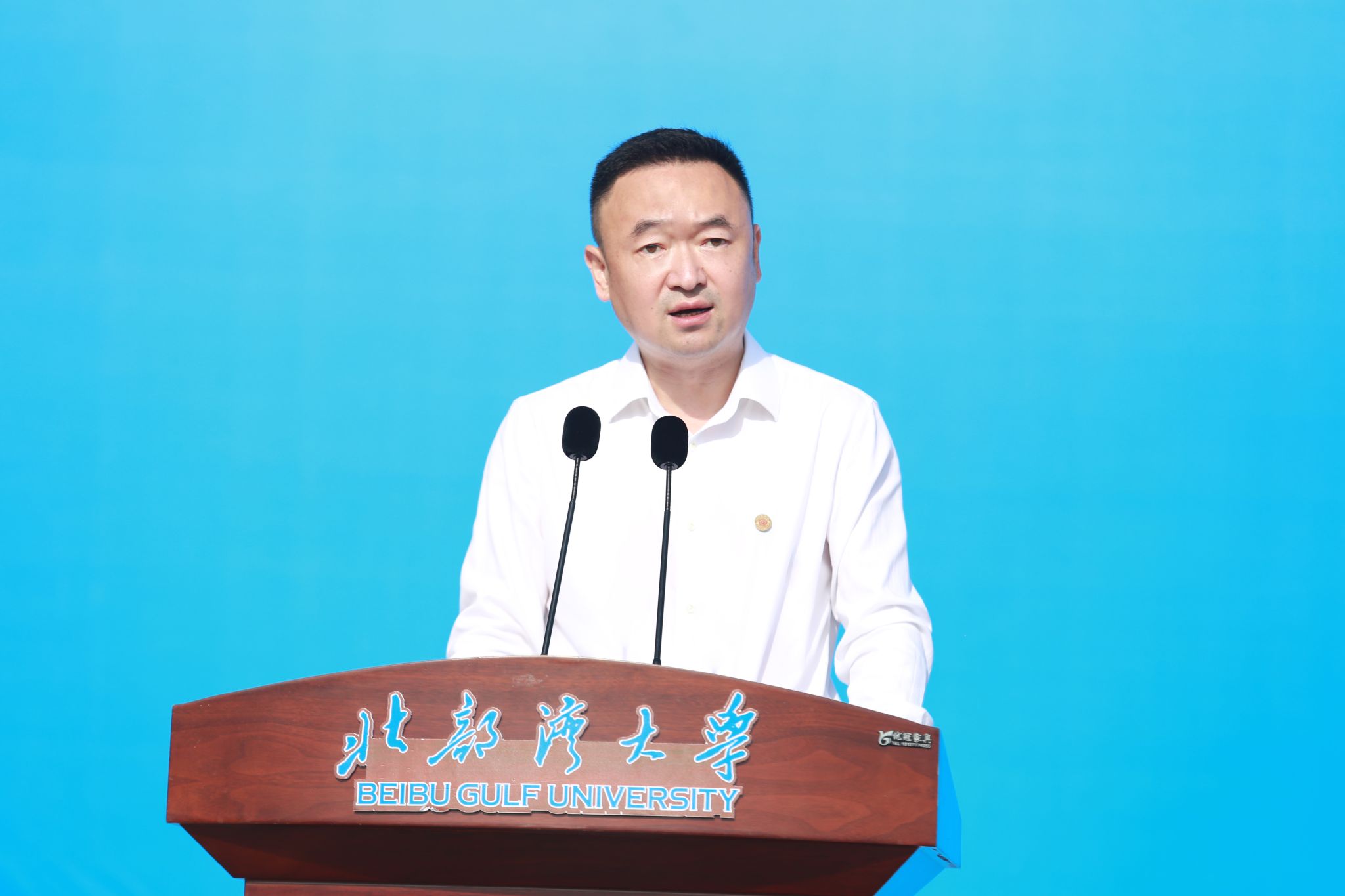 校党委副书记、校长苗剑讲话并为新生讲授开学第一课。他介绍了学校的办学定位、办学特色与办学成果,并对2025级新生提出四点殷切希望:一是希望同学们筑牢成长根基,校准前行航向。学业上,深耕专业领域、广泛涉猎知识,积极实践以锤炼本领,培养跨学科思维,坚守学术诚信底线;生活中,做到自理自律,保持规律作息与持续锻炼,以积极乐观心态直面困难挫折;交友时,秉持真诚包容之心,尊重个体差异,在相互学习中携手共进。二是希望同学们锚定发展方向,找准成长坐标。深入理解学校“海洋性、应用型、国际化”的办学特色,充分依托学校资源优势赋能自身成长,主动向优秀看齐、向榜样学习,朝着既定奋斗目标坚定迈进。 三是希望同学们争做“带着罗盘的探索者”“卷起裤脚的实干者”“扛得住风浪的追梦者”。在解决实际问题中积累经验、增长才干,在挑战考验中练就真本领,逐步打磨辨方向的敏锐洞察力、扛压力的坚韧品格与向远方的坚实底气,努力成长为高素质应用型人才。四是希望同学们与时代同行,将青春理想融入民族命运。把个人学习成长与国家发展、社会进步紧密结合,精准把握时代机遇,在kaiyun体育网页登录入口这一与广西发展同频共振、与国家战略同向同行的成长平台上,勇敢扬帆启航,无惧风浪挑战,奋力踏浪前行,在强国建设、民族复兴的伟大征程中贡献青春力量。