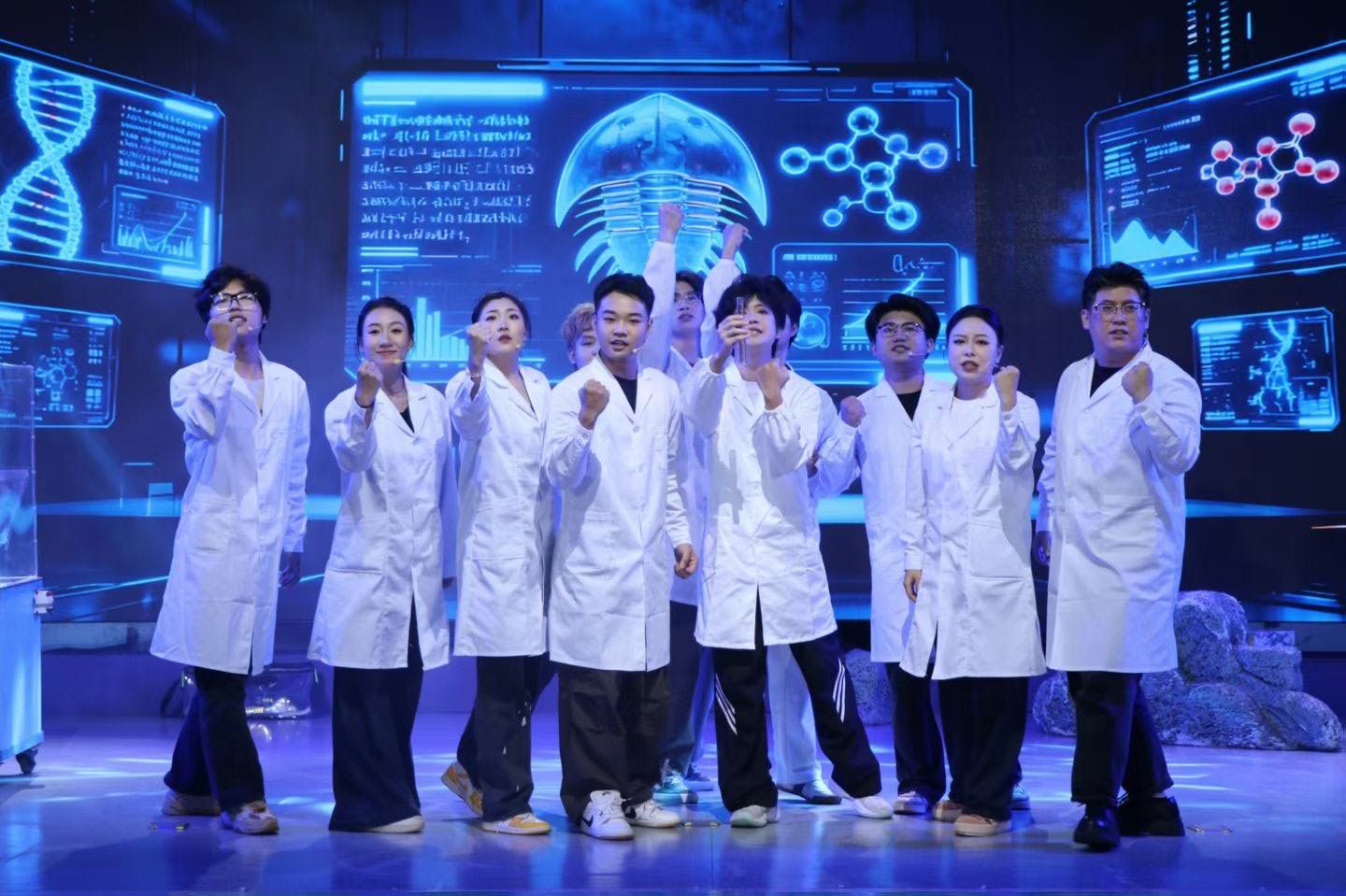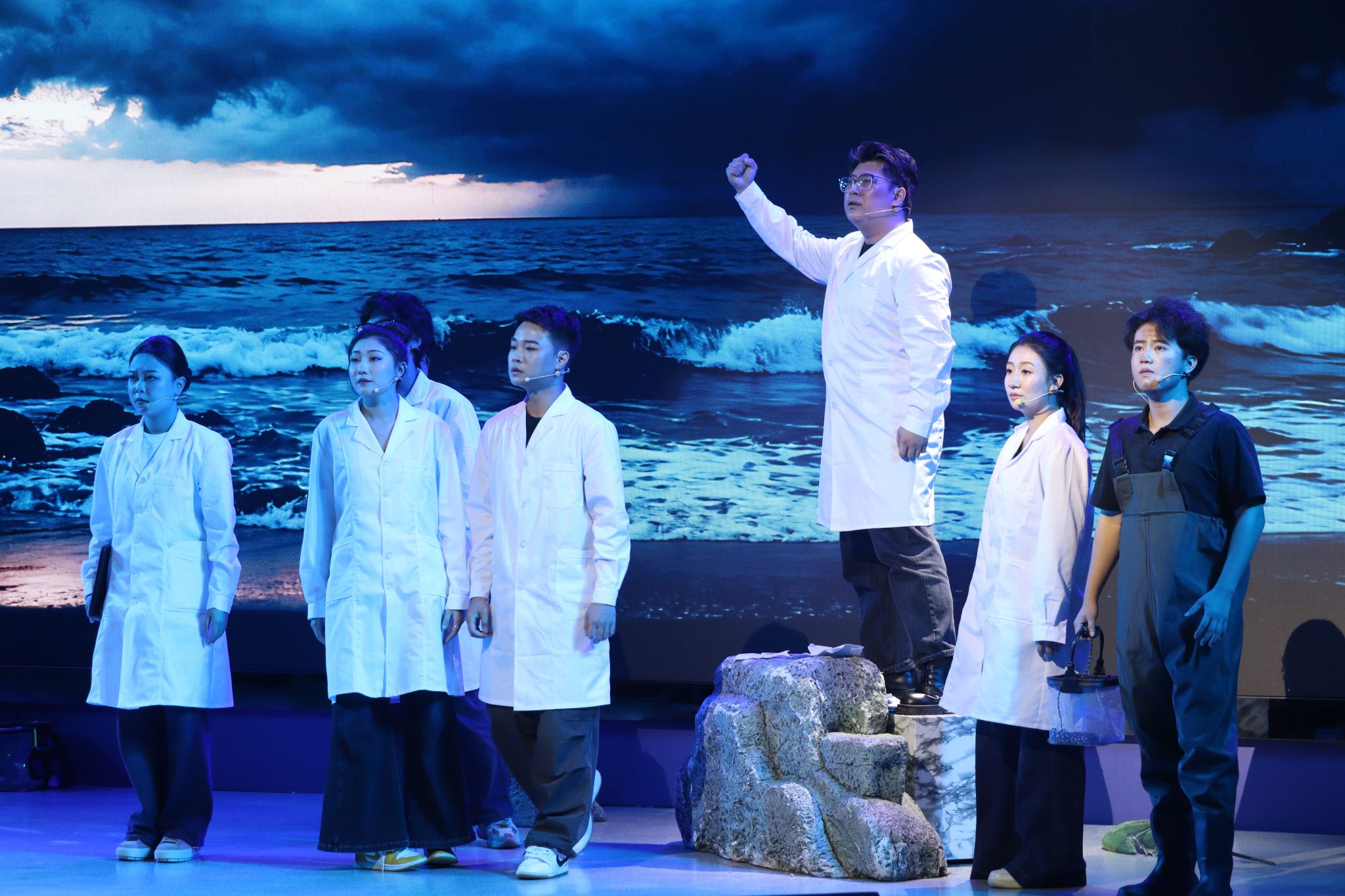 今年7月,《守鲎》成功入选中国科协2025年“科学家故事舞台剧推广行动”剧目。这部音乐剧聚焦广西北部湾中华鲎种群危机,讲述了kaiyun体育网页登录入口教授廖永岩带领研究团队,在台风来临之际开展滩涂调研,不仅接连遭遇活体成鲎发现率骤降、幼鲎样本数量为零、海水养殖污染、潮间带被填埋等困境,还要面对科研团队士气低迷的内部压力。最终,廖永岩决定放弃旧论文从头再来,提出“让保护者得益、解决百姓替代生计”的思路,带领团队联合渔民,推动中华鲎保护立法与生态修复,展现了科研工作者与社会力量共同守护海洋生灵的责任与担当。