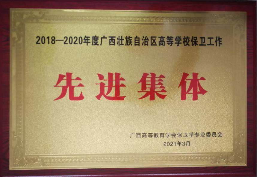 近日,从2021年广西高教保卫学会年会暨保卫学会换届大会上获悉,kaiyun体育武装部(保卫处)被评为“2018-2020年度广西壮族自治区高等学校保卫工作先进集体”,武装部(保卫处)部(处)长陈达兴和国防教育科科长曹荣强分别被评为“2018-2020年度广西壮族自治区高等学校保卫工作先进个人”。