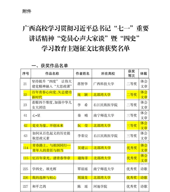 kaiyun体育《百年青春心向党,矢志建功新时代》《党史为鉴,开创未来》分别获“体会文章”类二等奖和三等奖,《青春路上,与祖国同行——青年人的责任与担当》《忆百年荣光,谱青春华章》同获“体会文章”类优秀奖,《我的选择与初心》获“诗歌”类优秀奖。