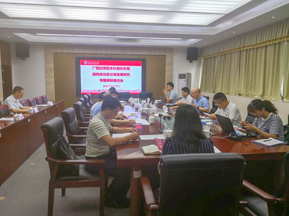 9月14日上午,自治区教育厅专家组旷乾教授一行5人到校就广西应用型本科高校布局结构优化和分类发展进行调研。学校副校长黄鹄在办公楼327会议室与旷乾等座谈交流。