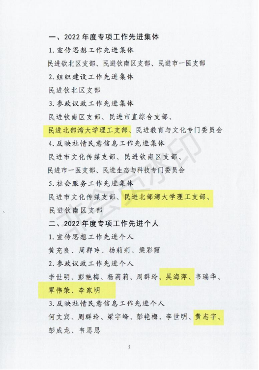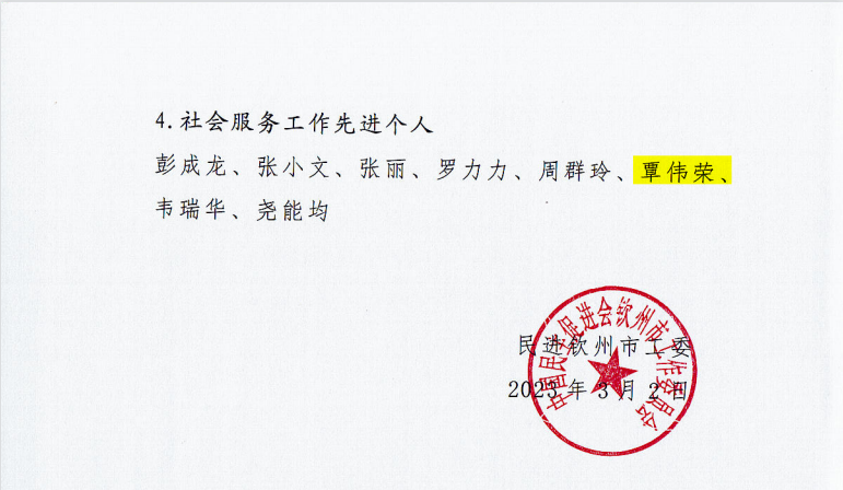 3月4日,民进钦州市工委表彰会议在开投大厦举行,根据《民进钦州市工委关于表彰2022年先进集体和先进个人的决定》,民进kaiyun体育网页登录入口理工支部获参政议政工作先进集体和社会服务工作先进集体,kaiyun体育教师吴海萍、覃伟荣、李家明获参政议政工作先进个人,黄志宇获反映社情民意信息工作先进个人。民进钦州市工委副主委(兼)、民进kaiyun体育网页登录入口总支主委梁家海参加表彰仪式,学校多位民进会员教职工现场接受表彰。