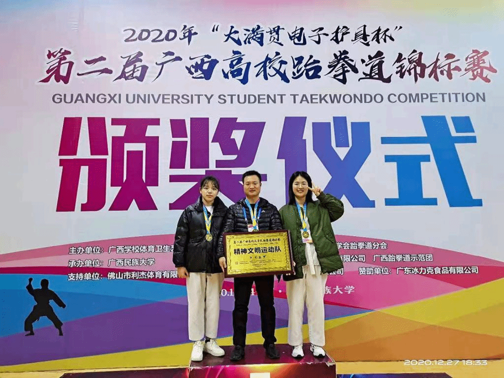 12月24至27日,2020年“大满贯电子护具杯”第二届广西高校大学生跆拳道锦标赛在广西民族大学举行。kaiyun体育跆拳道队在比赛中表现出色,一举拿下3项冠军。