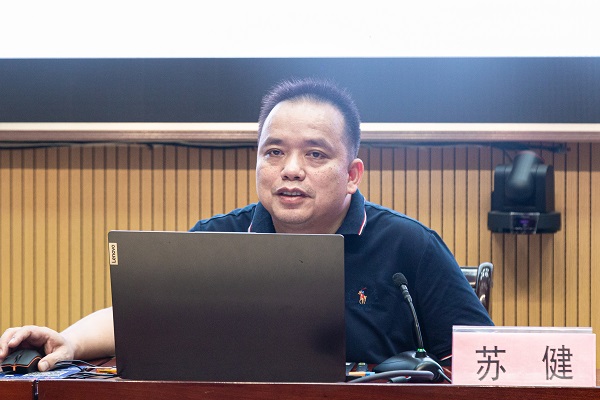 苏健围绕着《“十四五”广西科技计划项目申报指南(第三版)》的内容,系统地讲解了最新科技创新政策和各类项目申报的程序和要求,并从广西科技计划项目的体系、广西科技项目申报基本流程、广西科技项目申报须知、形式审查常见问题等四个方面对“十四五”广西科技计划项目的申报工作做了细致解读,并详细解答了教师的提问。