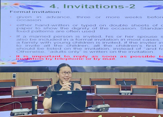 国际教育与外国语学院院长冯丽讲授《西方礼仪与跨文化交流》课程