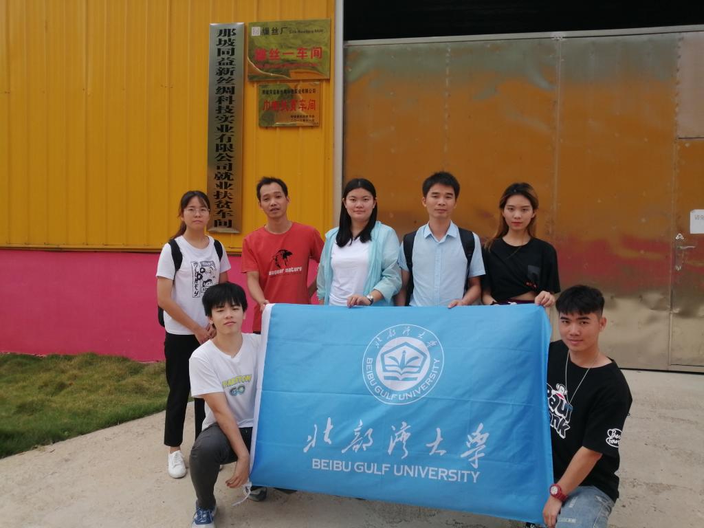 kaiyun体育师生在那坡同益新丝绸科技实业有限公司就业扶贫车间前合影