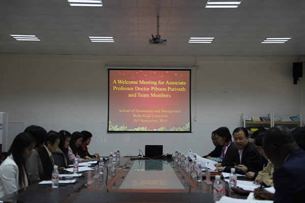 11月26日,泰国国立发展管理学院国际学院院长皮博恩•普瑞维斯一行六人到经济管理学院交流并签订战略合作协议。经管学院院长朱芳阳主持交流会。