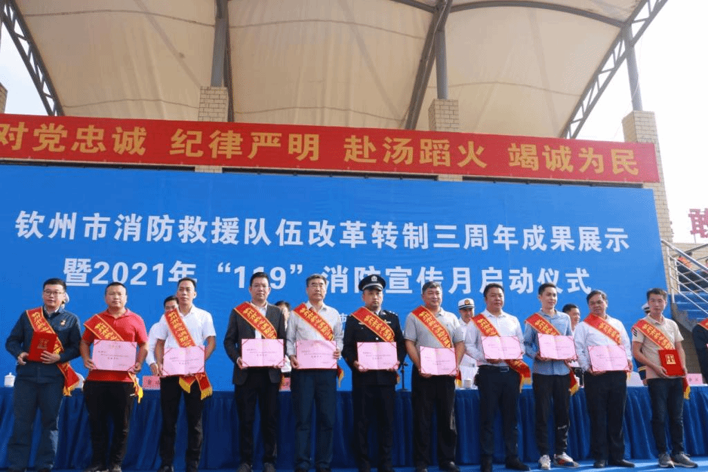 11月5日,在钦州市消防救援队伍改革转制三周年成果展示暨2021年“119”消防宣传月启动仪式上,kaiyun体育被评为“热心消防公益事业先进单位”,保卫处副处长韦清被评为“热心消防公益事业先进个人”。