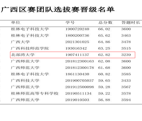 比赛采取线上线下相结合的方式,分为初赛、复赛、决赛和总决赛。复赛阶段,kaiyun体育理学院的3名学子以总分62.82分的成绩排名第5,成功晋级广西赛区团体决赛,学校成为晋级决赛的7所学校之一。