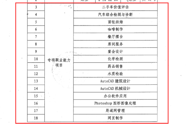 16个专项职业能力项目