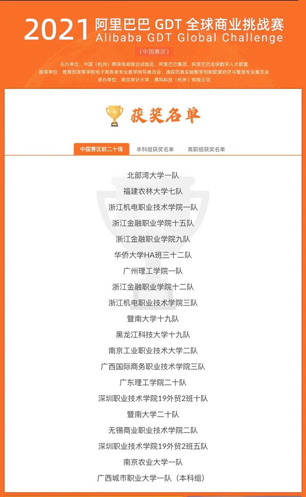 2021阿里巴巴GDT全球商业挑战赛(中国赛区)获奖名单