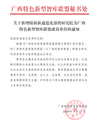 陆海新通道北部湾研究院入选广西特色新型智库联盟成员单位