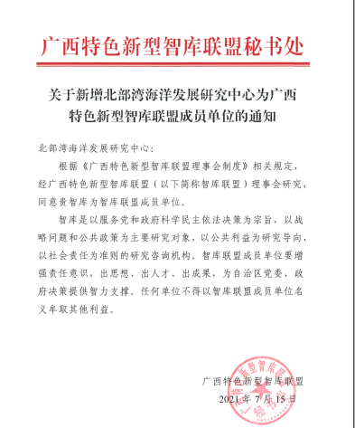 北部湾海洋发展研究中心入选广西特色新型智库联盟成员单位