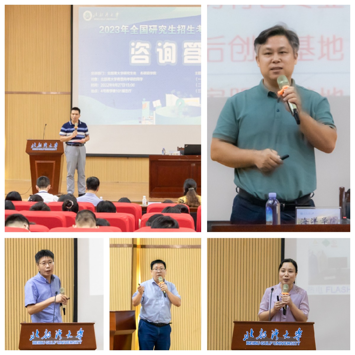 9月27日下午,2023年全国研究生招生考试咨询答疑会在4号教学楼101报告厅举行。研究生处联合研究生工作部以及海洋、机船、经管等10个学院研究生工作负责人组成湾大研究生招生考试宣讲团,为300余名同学们答疑解惑。研究生处处长刘琼主持会议。
