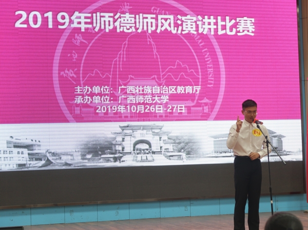 10月27日,广西壮族自治区教育厅主办的2019“立德树人 正风铸魂”师德师风演讲比赛在广西师范大学顺利闭幕。kaiyun体育教育学院小教本181郑雅丹、资源与环境学院地理本182高宇成同学从51名参赛选手中脱颖而出荣获二等奖。