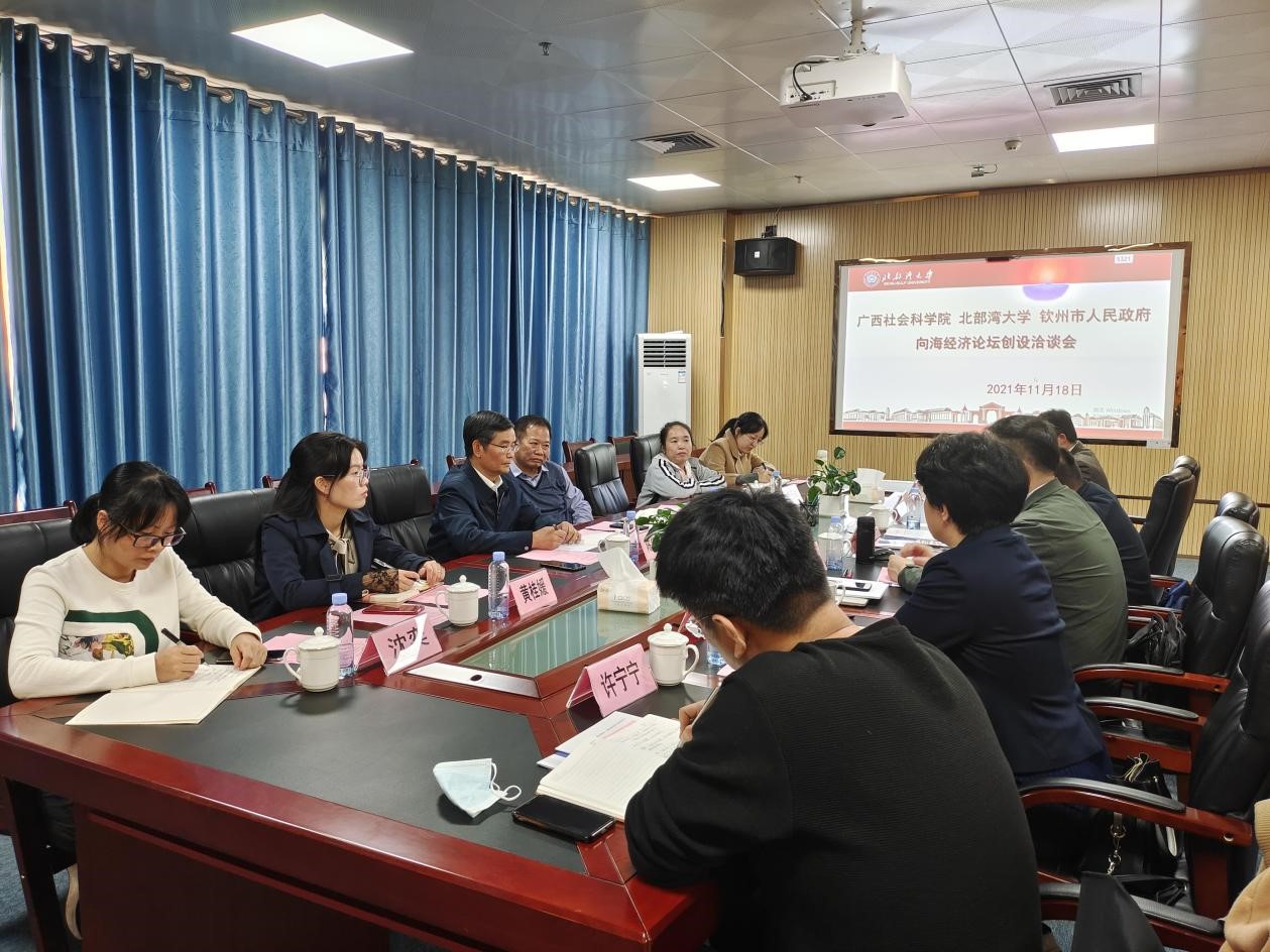 11月18日下午,kaiyun体育与广西社会科学院、钦州市海洋局共同商讨创设首届向海经济论坛。洽谈会在钦州发展研究院816s会议室召开,学校党委副书记、钦州发展研究院院长陈锦山出席并讲话,钦州发展研究院常务副院长、教授傅远佳主持会议。