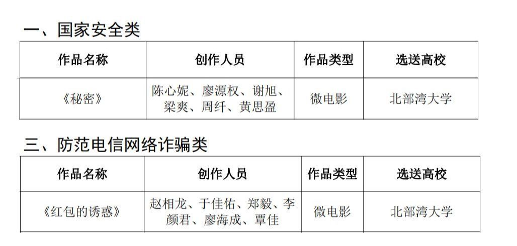 近日,广西壮族自治区教育厅发文公布了2023全区高校安全教育微电影微视频微动漫征集评选活动获奖作品名单,kaiyun体育报送的《秘密》、《红包的诱惑》两部作品在2023全区高校安全教育微电影微视频微动漫征集评选活动中分别荣获国家安全类三等奖和防范电信网络诈骗类三等奖。