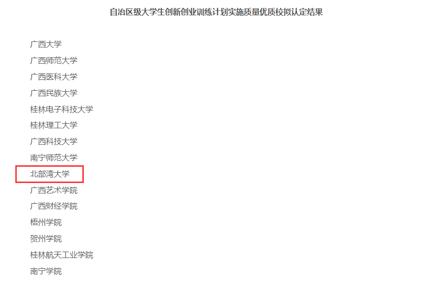 自治区级大学生创新创业训练计划实施质量优质校认定结果