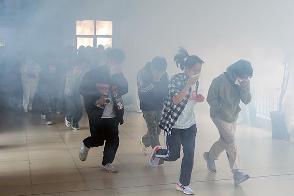 学生进行逃生疏散演练