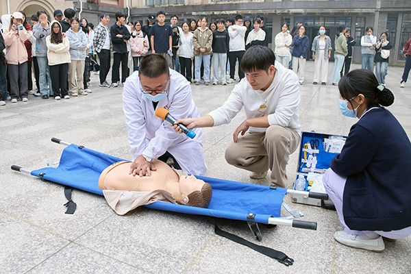 医护人员现场演示心肺复苏