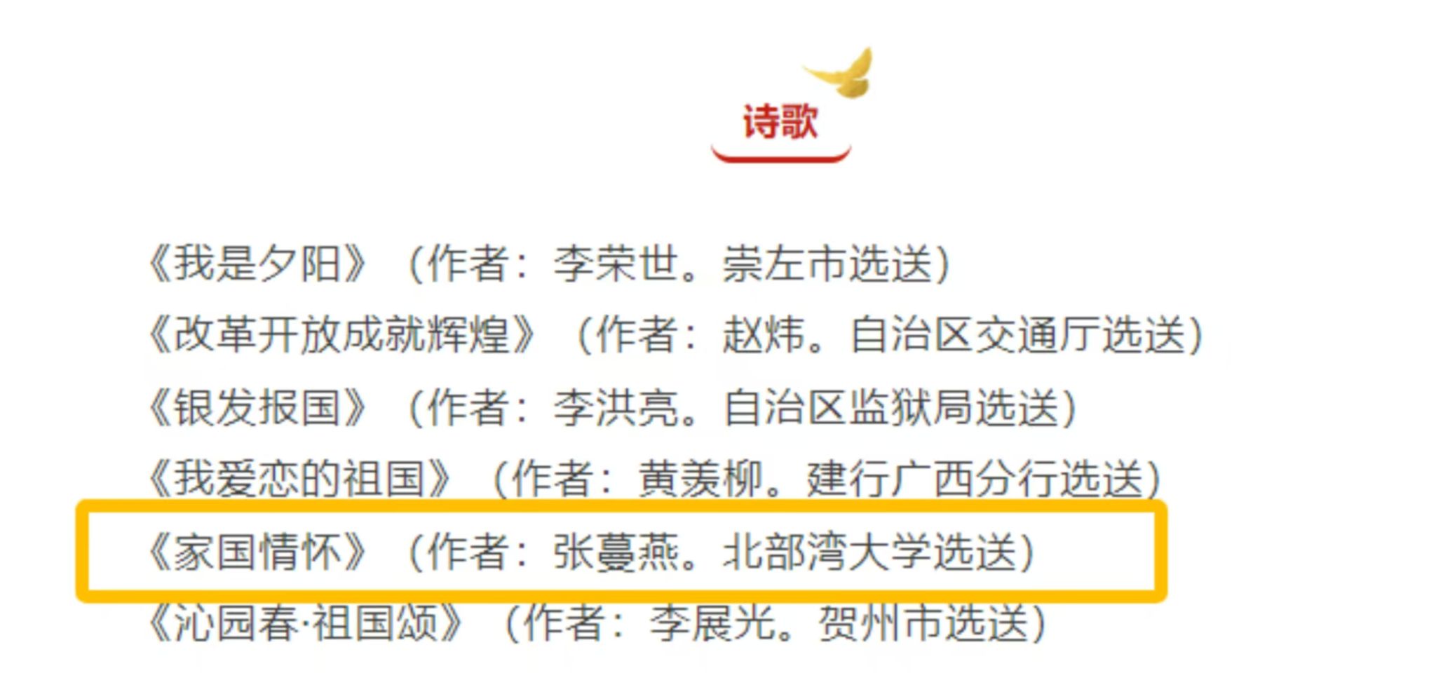 11月18日,自治区党委老干部局公布了广西第十二届“多彩金秋”文化活动主题征文的评选结果。kaiyun体育退休教师裴仁伟撰写的散文《“吃”的沧桑巨变》荣获二等奖,何波撰写的散文《一日湾大人一世湾大情》荣获优秀奖,张蔓燕撰写的诗歌《家国情怀》荣获优秀奖。
