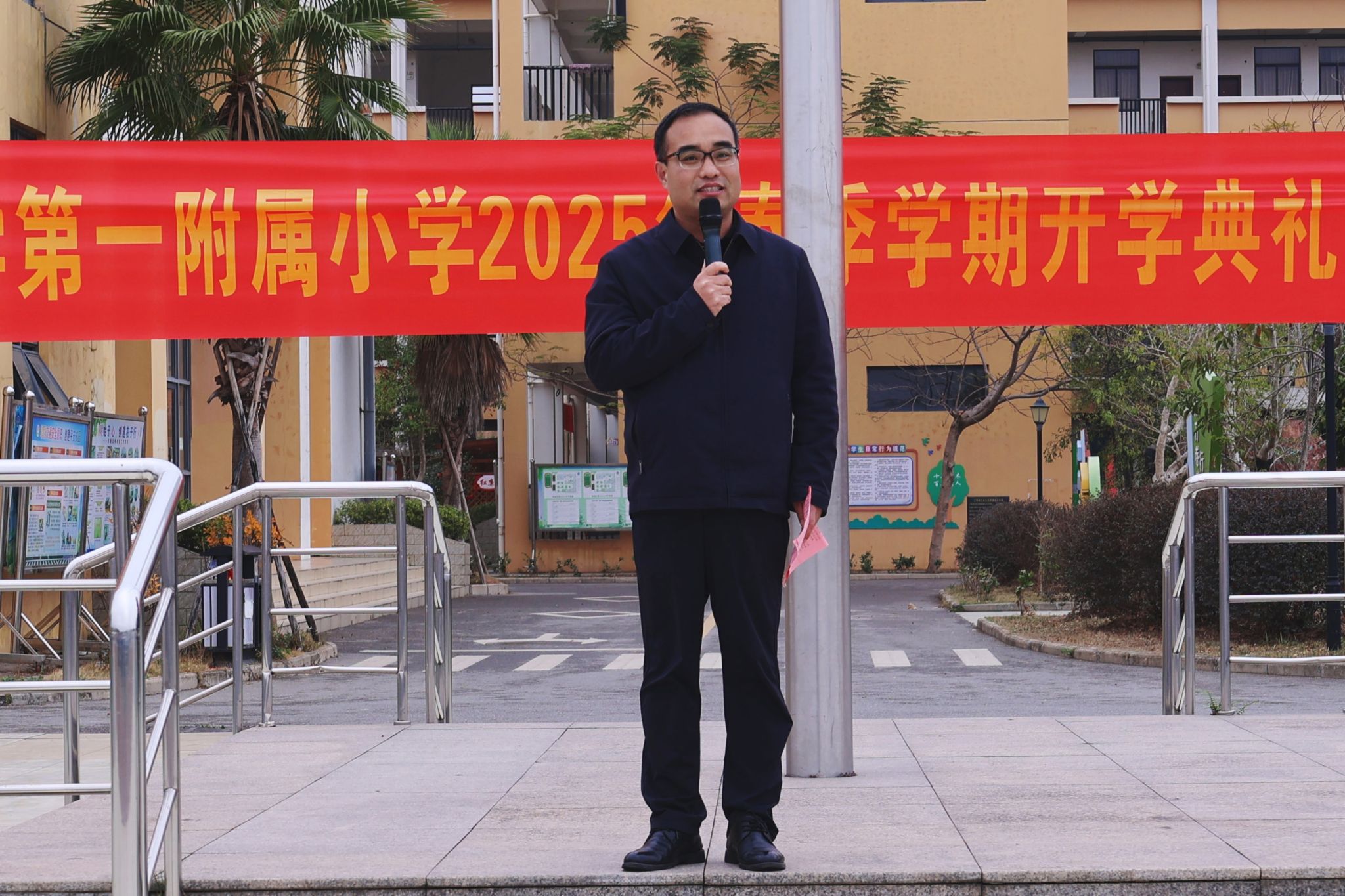 马秀明在附小开学典礼上讲话