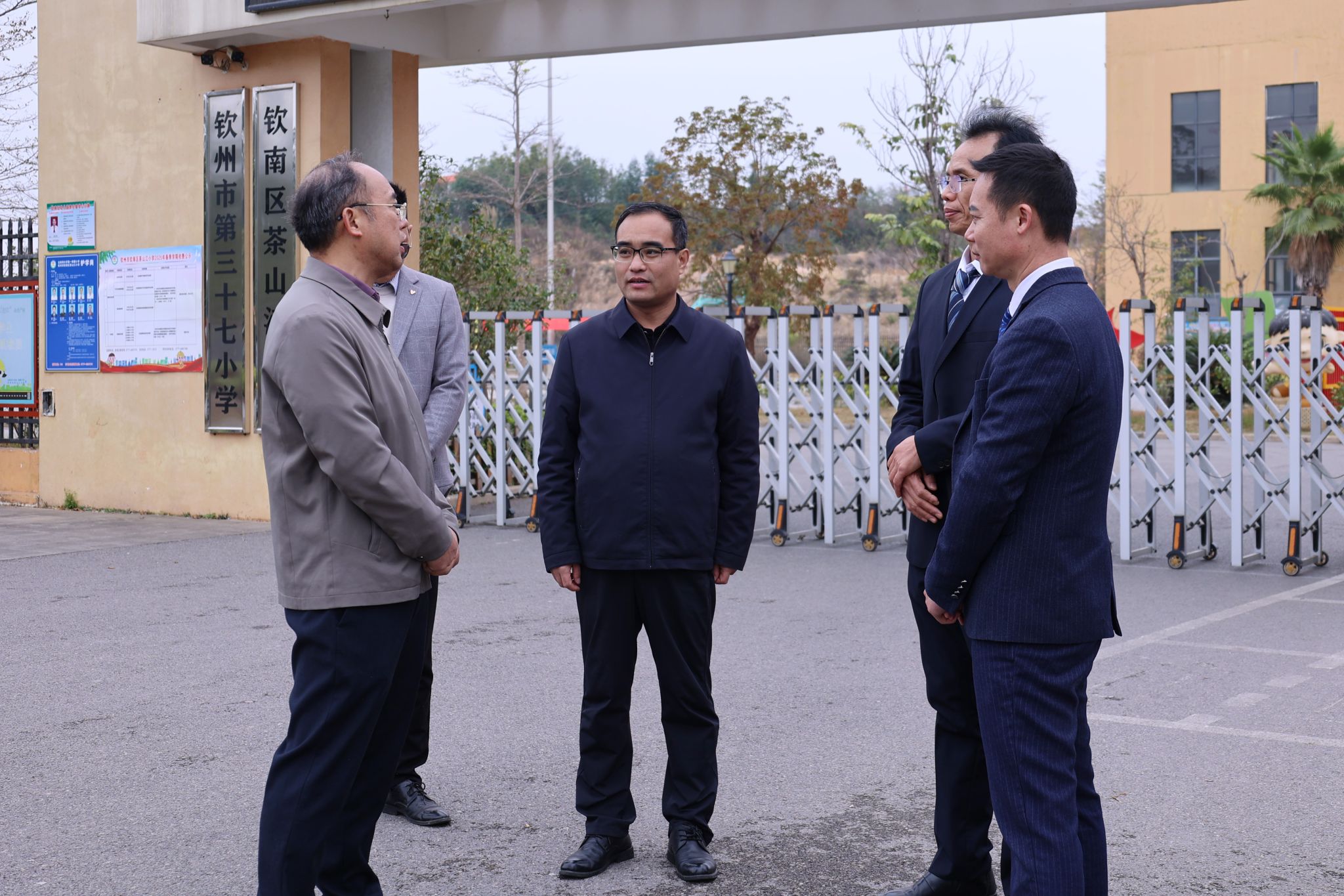 马秀明(中)与附小领导交流