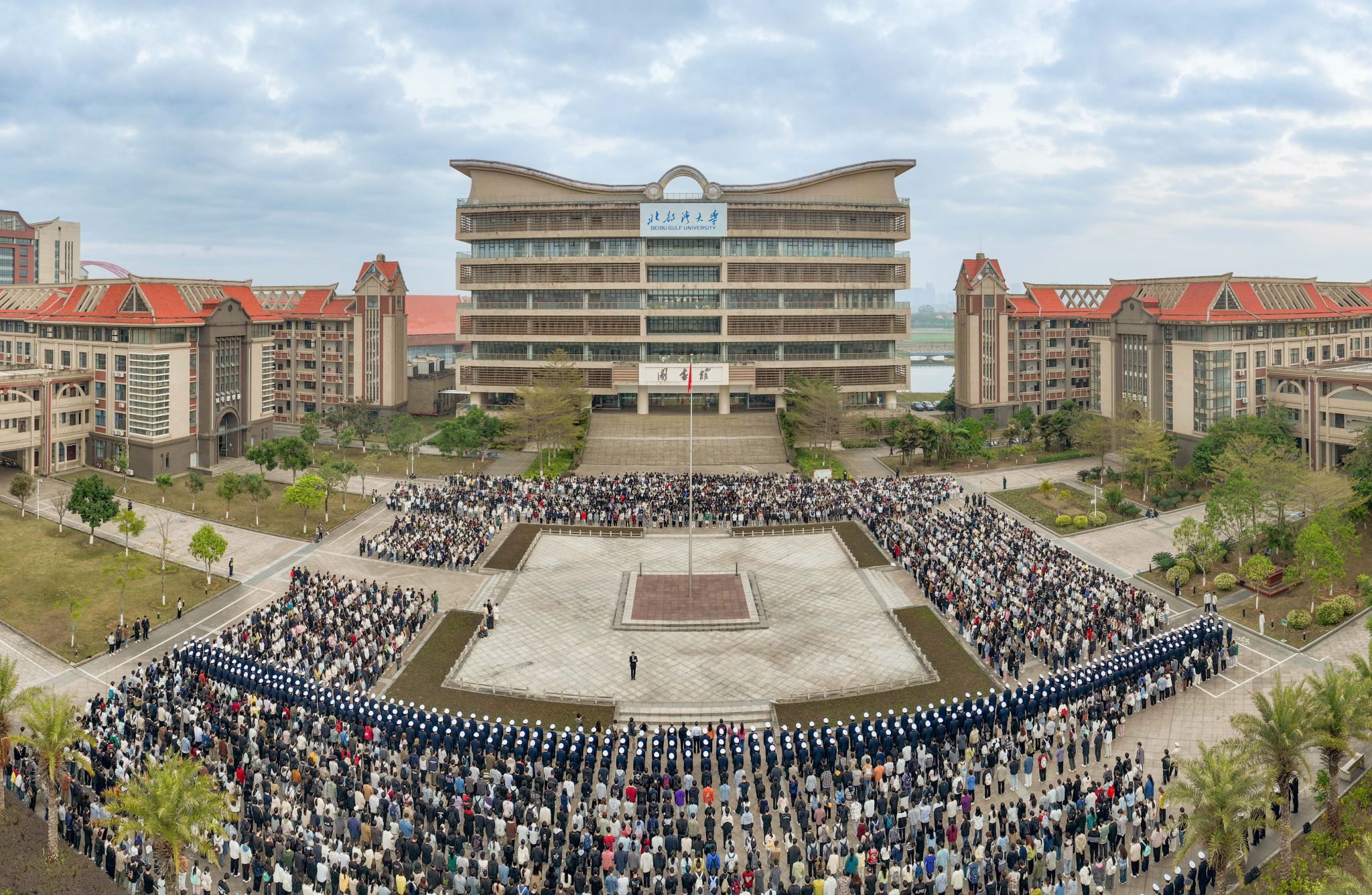 7时整,国旗护卫队迈着铿锵有力的步伐,昂首挺胸护送鲜艳的五星红旗入场。在庄严的国歌声中,全体师生向国旗行注目礼。五星红旗在晨光中冉冉升起,高高飘扬在kaiyun体育网页登录入口上空。