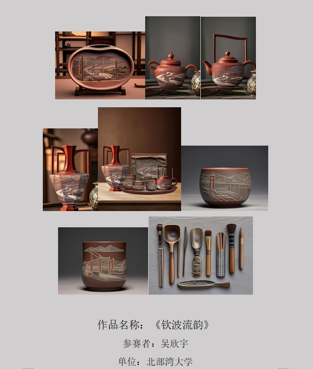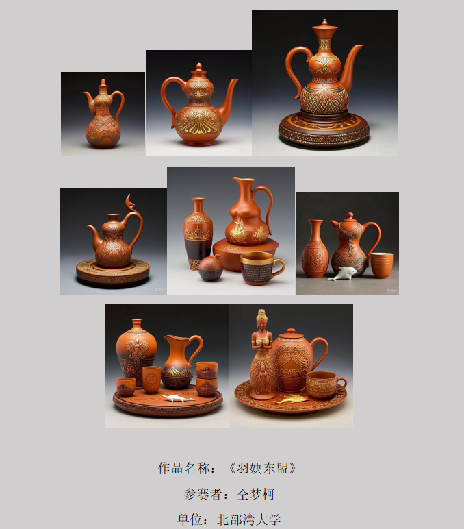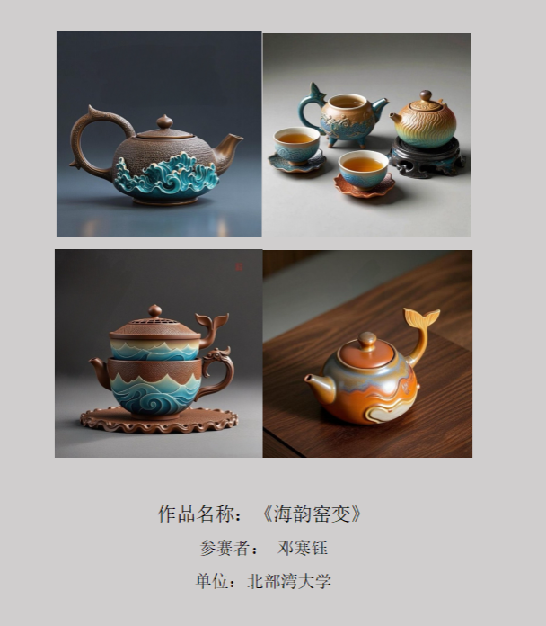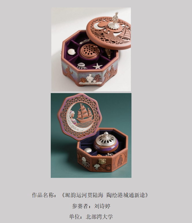 参赛作品通过AI技术辅助设计,将平陆运河文化、东盟文化、海洋文化、英雄文化等地域特色元素有机融入坭兴陶艺术创作。作品涵盖文创产品、工艺雕塑、视觉海报、实用器皿、景观设计等多元形态,展现出传统工艺与现代科技的创新融合。赛事特别呈现女性群体在AI生成艺术领域的创造性探索,艺术表现与数字技术的交相辉映,为观众带来全新视觉体验与美学感知。