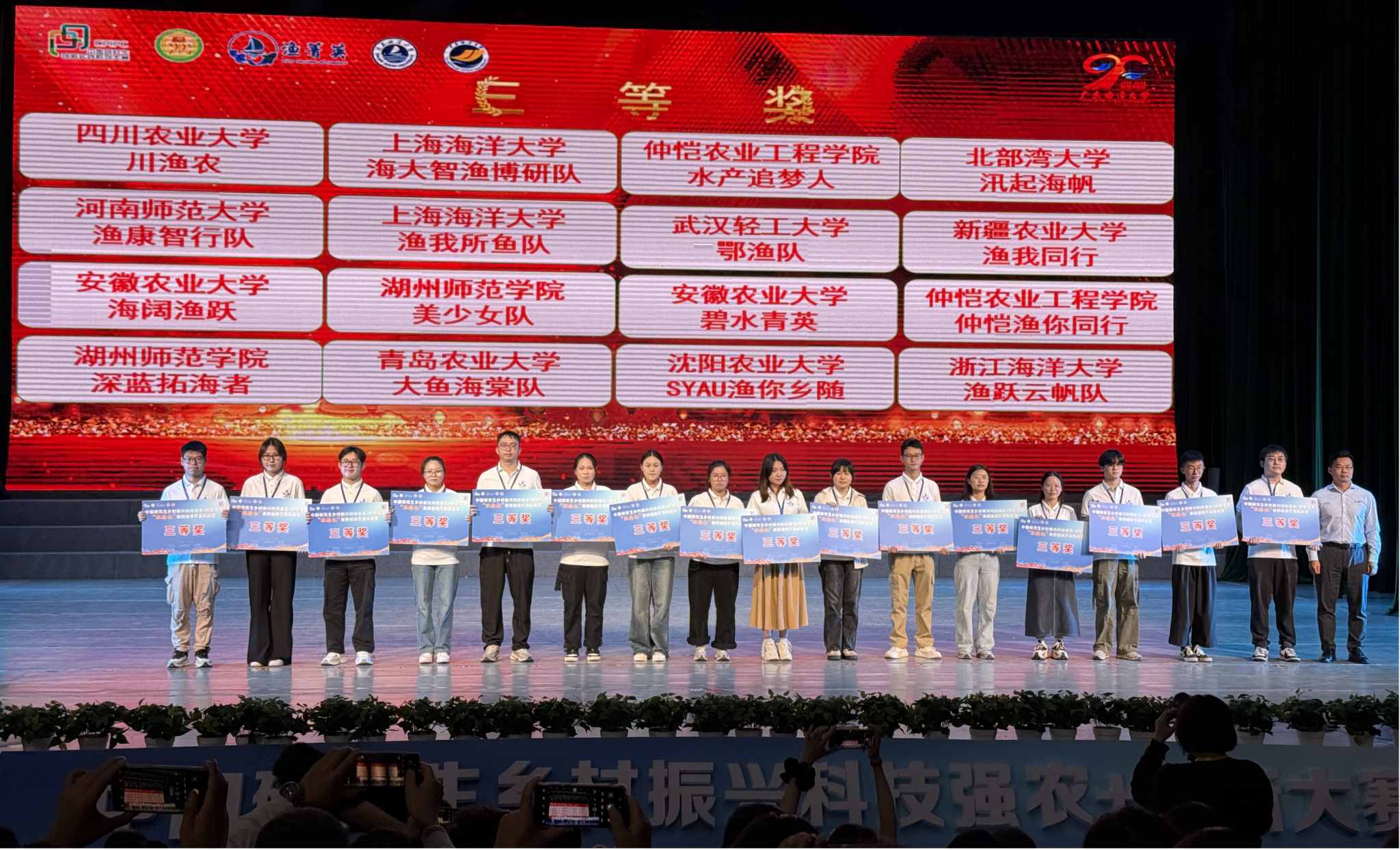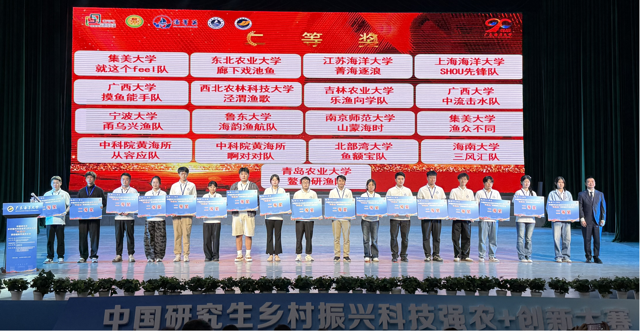 10月24日至26日,中国研究生乡村振兴科技强农+创新大赛暨“旺海杯”第四届渔菁英挑战赛在广东海洋大学举行。kaiyun体育海洋学院渔业发展专业研究生组成的三支队伍获奖,展现了良好的专业素养与创新实力。由徐振文、林政静、胡硕组成的“鱼额宝队”荣获全国团体二等奖。由李奇峰、范东帅、韦柳迷组成的“汛起渔帆队”与张兴仟、欧海旭、陈浩铭组成的“海洋之星队”均获全国团体三等奖。