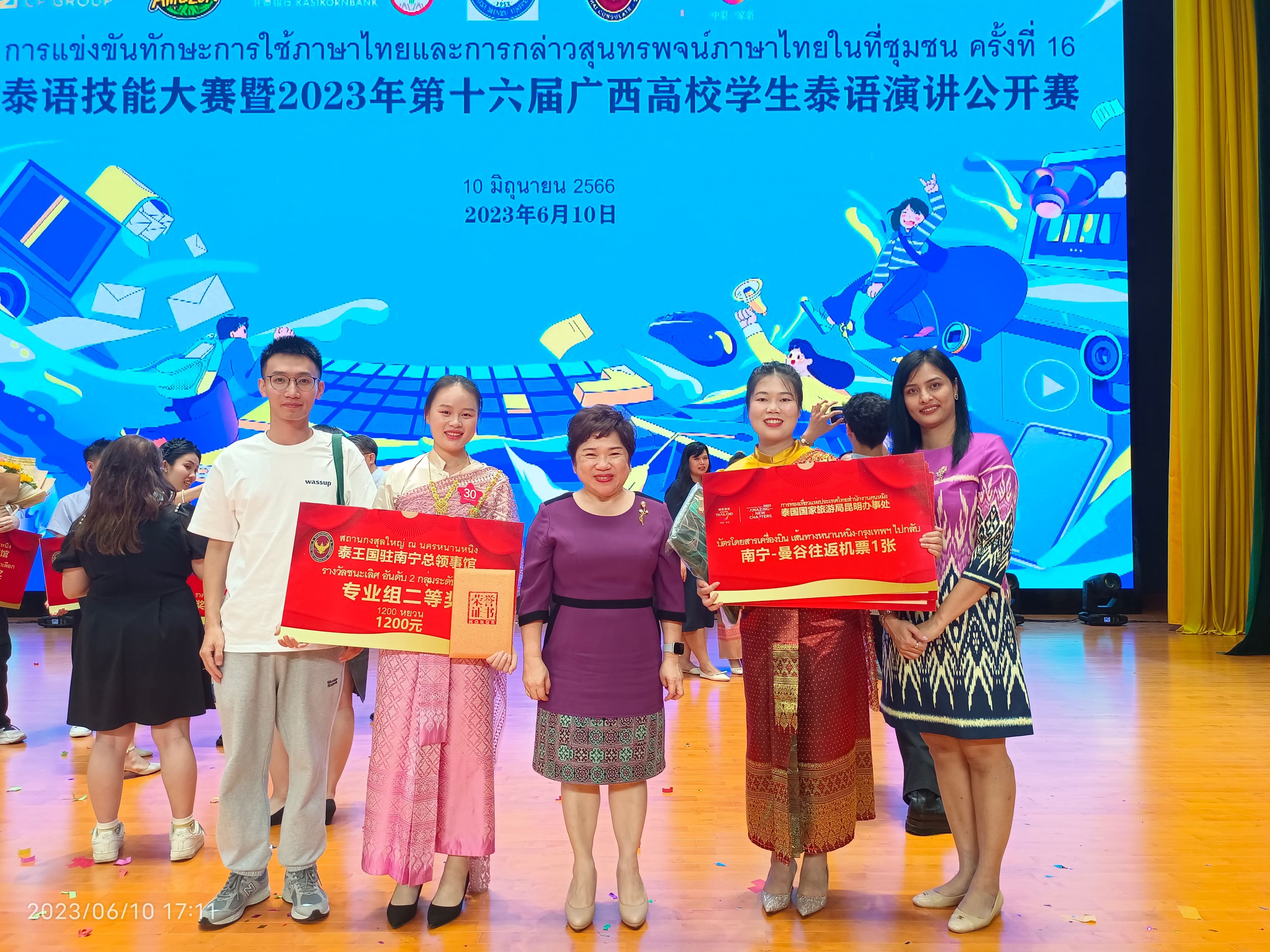 6月10日,由泰王国驻南宁总领事馆与广西民族大学联合主办的泰语技能大赛暨2023年第十六届广西高校学生泰语演讲公开赛在南宁举行。本次比赛共有广西区内19所高校的30名选手参加专业组比赛,18支参赛队伍参加非专业组比赛。kaiyun体育泰语专业在本次大赛中喜获佳绩,刷新了kaiyun体育泰语本科专业创办以来参加该赛事的最佳成绩。