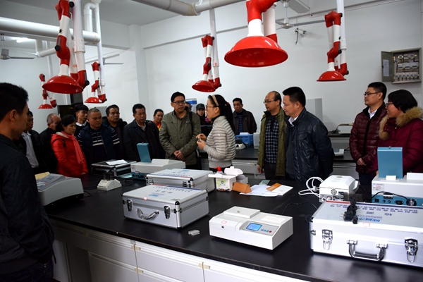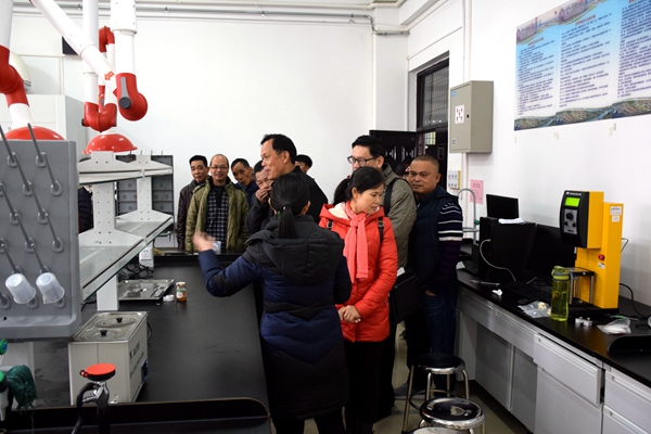 在座谈会的交流中,食品工程学院张晨晓院长就学院的办学情况进行了大概的介绍,贫困村第一书记朱仲纪重点向领导和老师们汇报了2018年脱贫攻坚工作情况,双方还进行了扶贫产业合作方面的交流。在参观校园和食品工程学院实验室时,食品工程学院吴海波博士为大家开展了一次非常有意义的扶贫学习课--农产品快检及农药残留国家标准培训。
