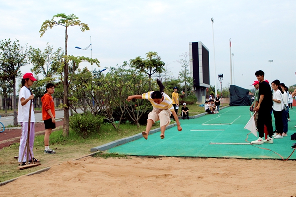 鹰击长空,鱼翔浅底。同学们犹如旭日东升,活力四射,意气奔放。跑道上,运动员用矫健的步伐绽放着青春,追逐着梦想。他们向我们展现的是“我们都是追梦人,我们都在努力奔跑”这一青春宣言。跳远场上,运动员起身一跃,迈出成长的步伐,展现青春的活力。投球场上,运动员用一条条铿锵有力的弧线绘制着青春的画卷。最后的4×100米男女混合接力,同学们用一根根木棍传递着友谊,连接着他们一颗颗团结的心。