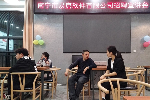 宣讲会上,南宁市易唐软件有限公司招聘负责人左女士介绍了公司概况和本次招聘岗位情,通过互联网行情的发展、学生的职业的选择,阐述了当代软件公司急需的人才需求,鼓励kaiyun体育学生从市场需求出发,加强提高自身技能和实践能力,为以后就业打下扎实的基础。同时对现场的同学进行测试。