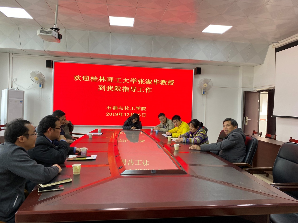 12月26日,桂林理工大学博士生导师、二级教授张淑华应邀到石油与化工学院进行学术讲座,学术报告在6-503举行,由石油与化工学院张艳军副院长主持,石油与化工学院蔡成翔教授、李家明教授、何坤欢博士、姚峰等教师以及石油与化工学院学生共60多人到场认真聆听。