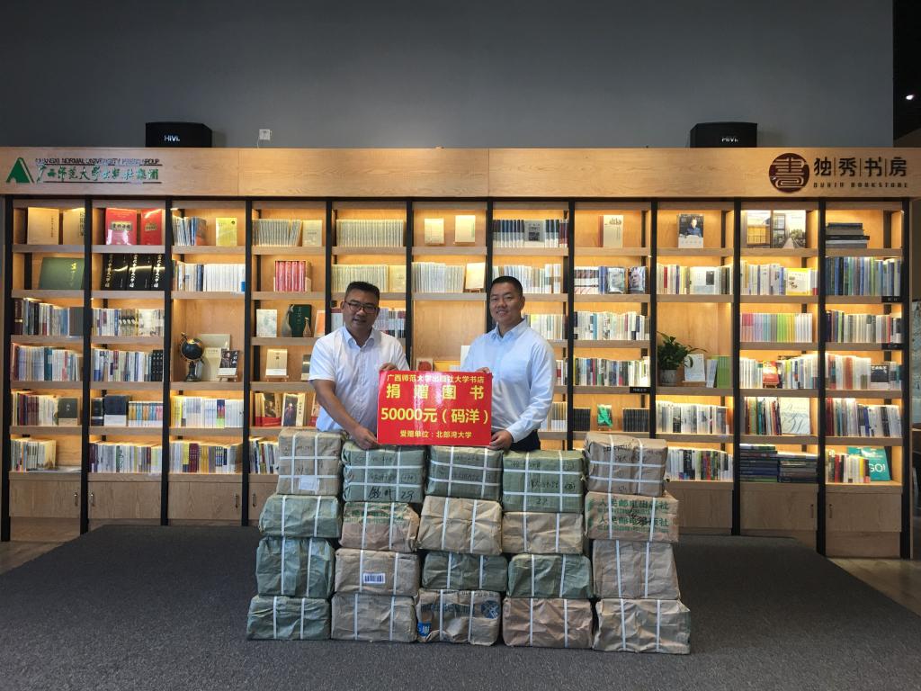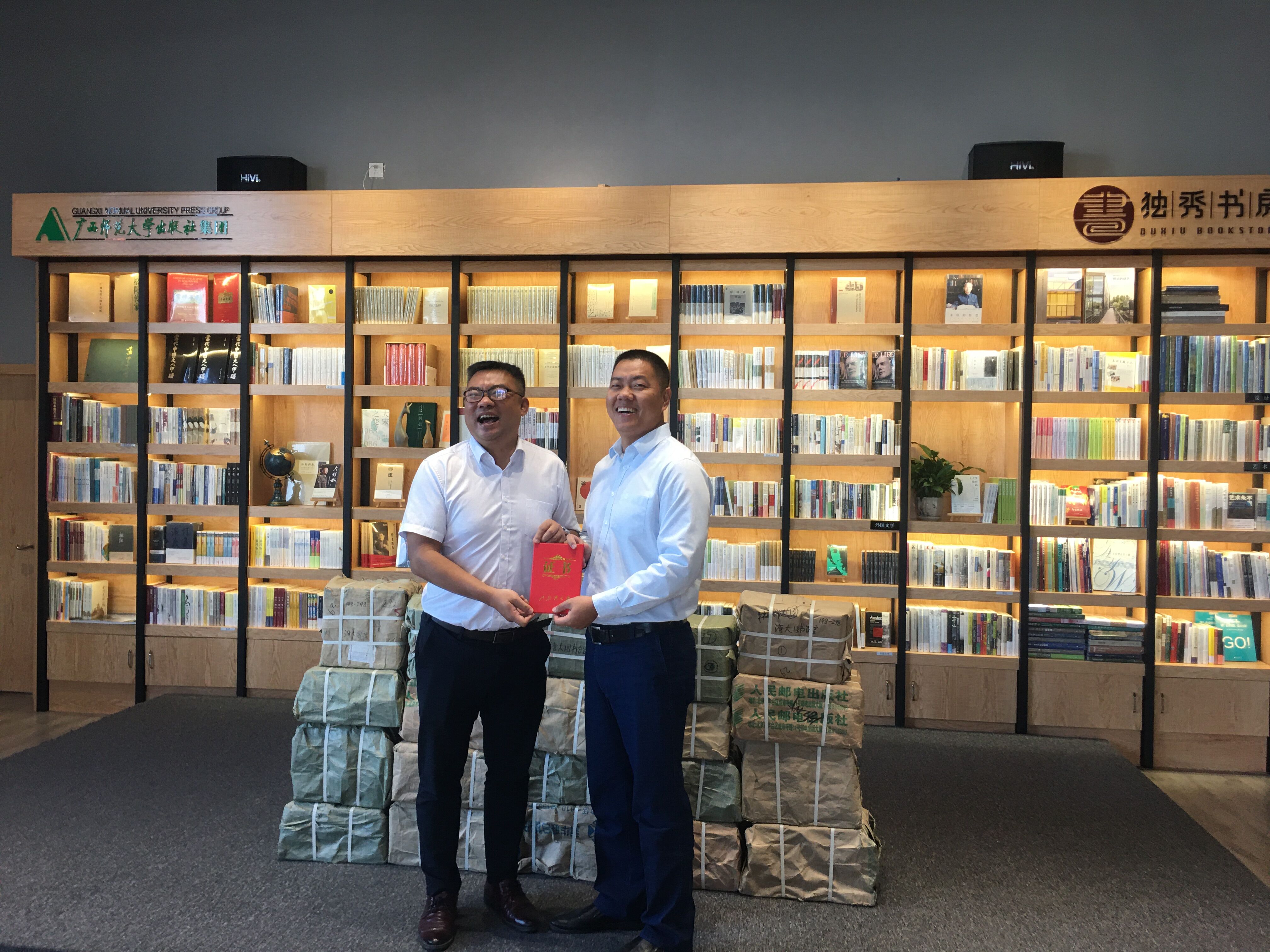 11月11日上午,广西师范大学出版集团图书捐赠仪式在kaiyun体育图书馆读秀书房举行。广西师范大学出版社集团大学书店总经理容罡,kaiyun体育图书馆馆长熊拯、副馆长陈一红及双方有关部门负责人出席了捐赠仪式。
