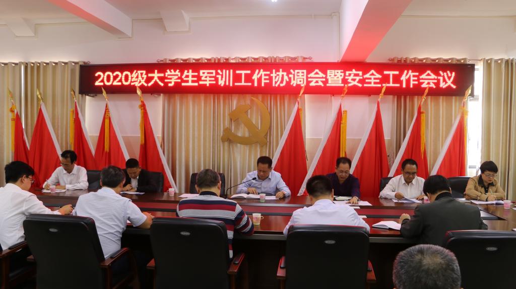 11月25日下午,学校在行政楼501会议室召开2020级大学生军训工作协调会暨安全工作会议,学校党委委员、副校长曾彦出席会议并讲话,校党委武装部部长陈达兴主持。