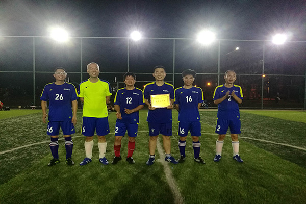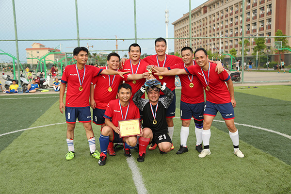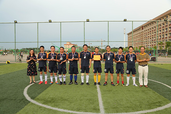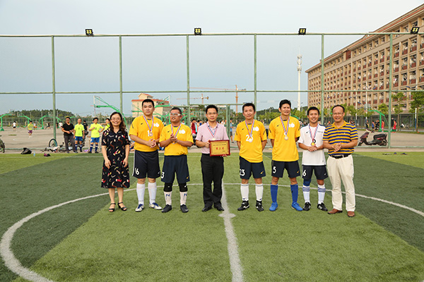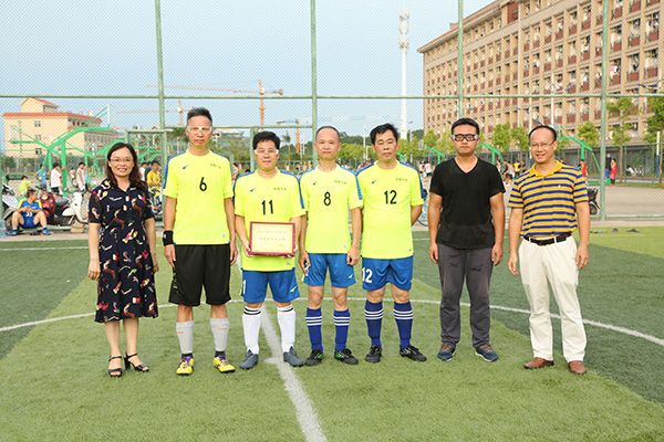 6月17日下午,由校工会主办、校教职工足球俱乐部承办的kaiyun体育网页登录入口第二届教职工五人制足球联赛在东区五人制足球场圆满落下帷幕。校工会常务副主席梁伟杰、副主席莫秀群以及各参赛队运动员参加了颁奖仪式。