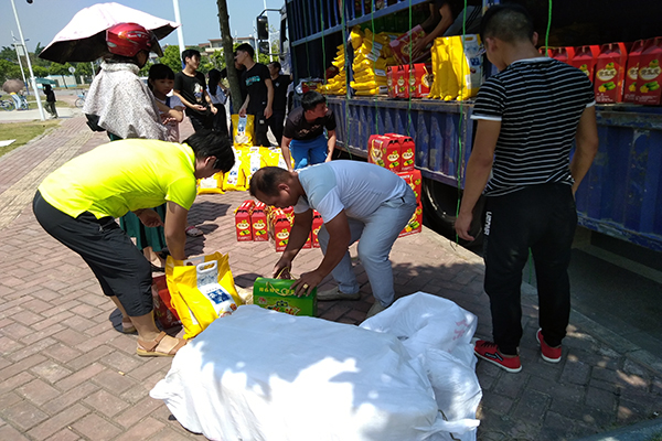 老师们领取国庆节日慰问品(消费扶贫农副产品)