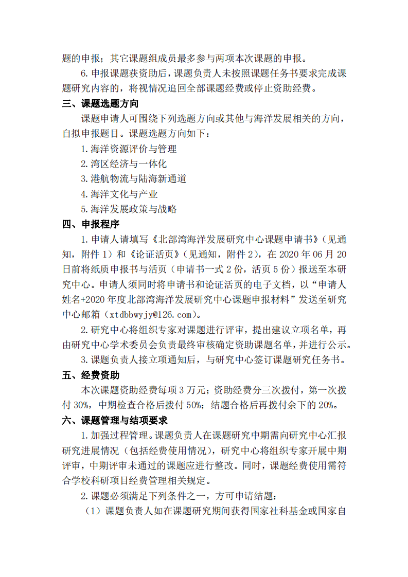 关于组织申报2020年度北部湾海洋发展研究中心课题的通知
