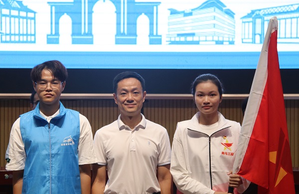 陈湘如副书记为培训班授班旗。与会嘉宾为学员赠书,将象征着知识、进步与革命之火的“青马工程”培训教材交到本届学员手中。