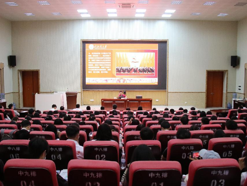 11月23日晚,校党委副书记陈湘如到2022年青年马克思主义培养工程培训班宣讲党的二十大精神。学校全体专职团干、全体青马班成员、各学生组织主要干部聆听了宣讲报告。校团委书记郑德威主持宣讲会。