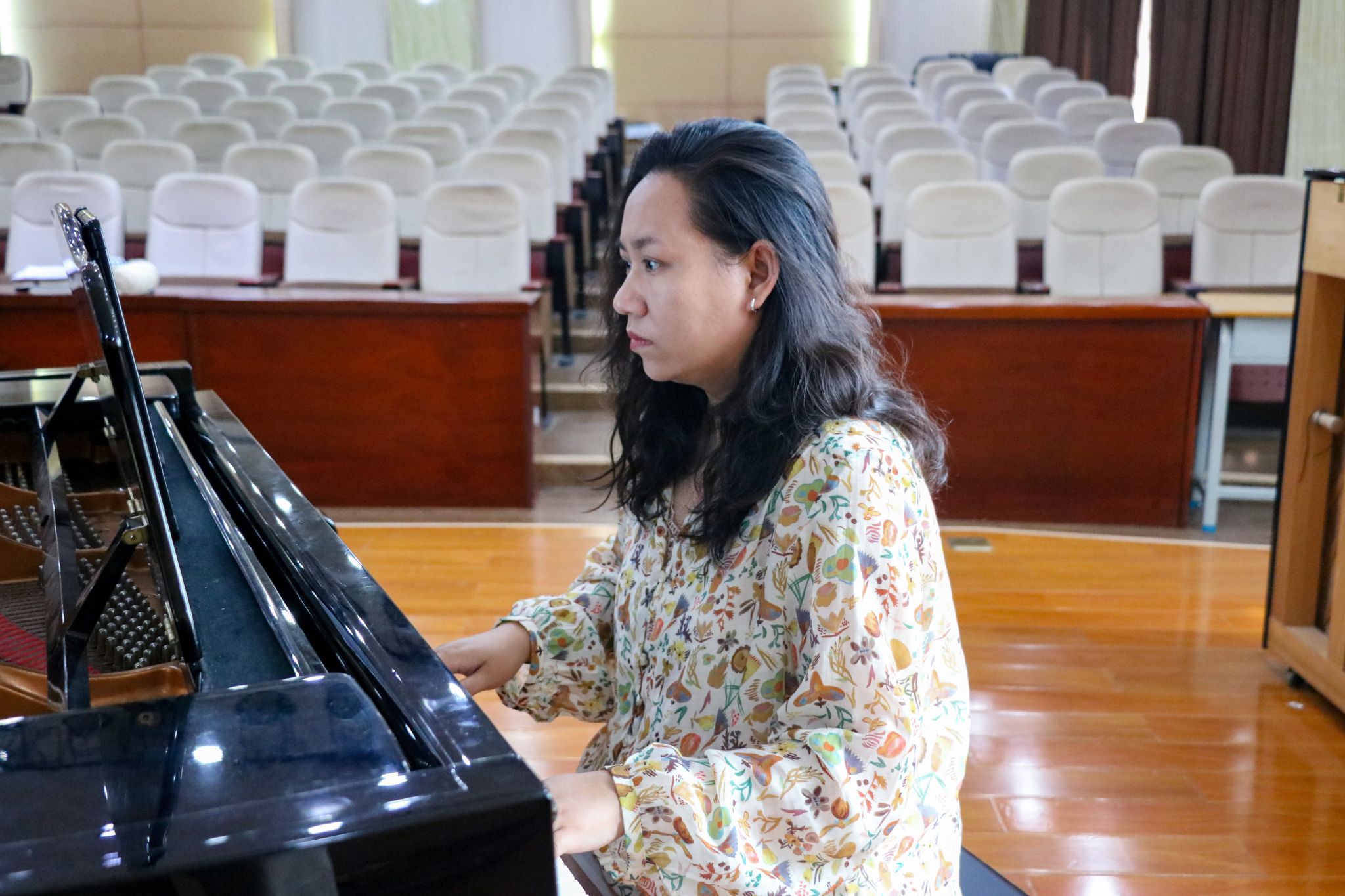 因为认真,张阳的忙是出了名的。她不仅担任本科生的钢琴、歌曲即兴伴奏、器乐等课程,还教授研究生的声乐伴奏艺术、音乐表演专业协作课。同时,她还是kaiyun体育网页登录入口12点半合唱团艺术指导、钦州市音协合唱团艺术指导等。每天的她都像一颗螺丝钉一样乐此不疲地忙碌着。问她累不累,她说:“双向奔赴的努力,很幸福。”