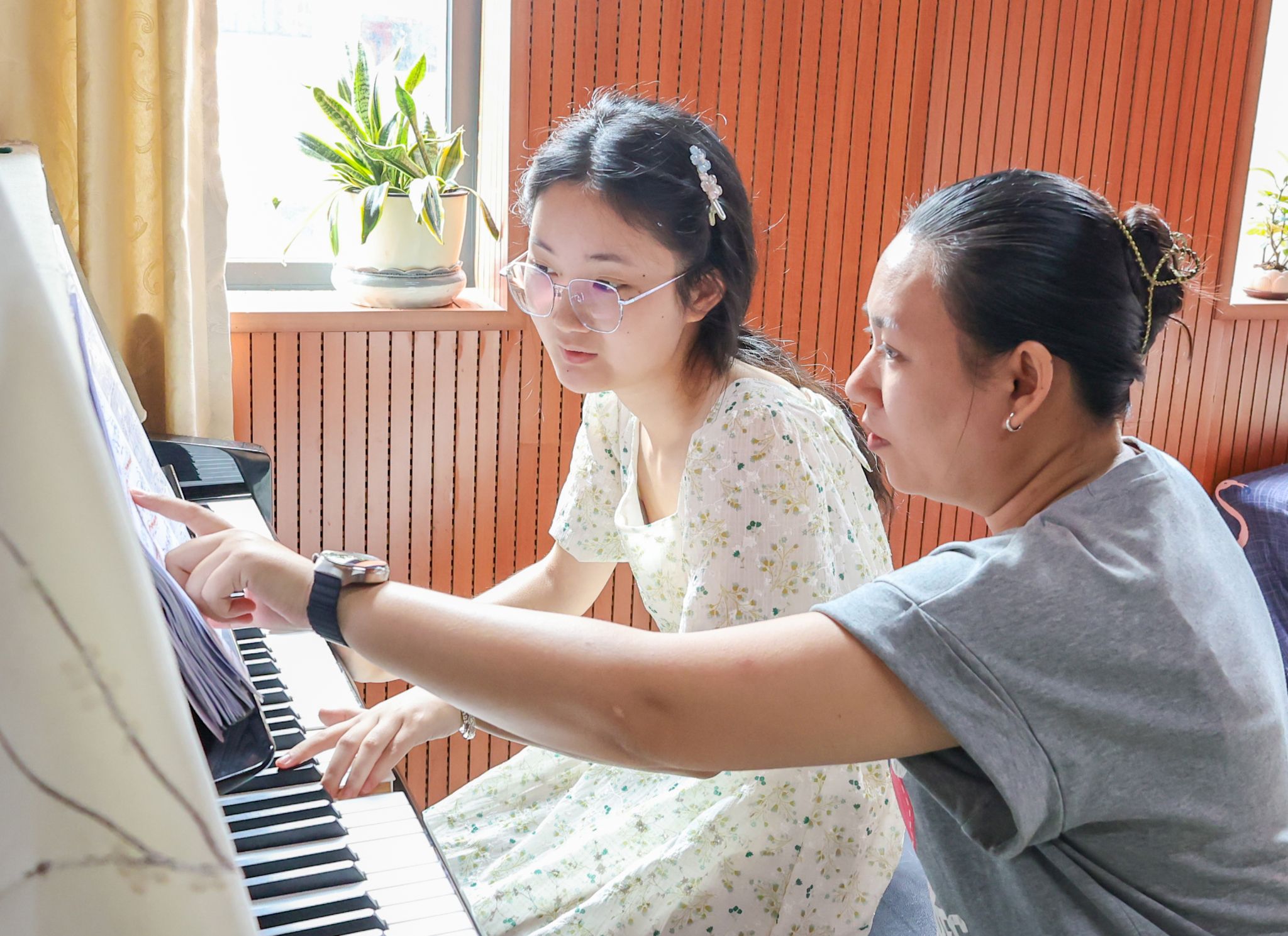 在别人看来很简单的“你唱我跟”的钢琴伴奏,对于张阳来说,却是一个要求“基本功扎实、应变能力强”的专业活儿。不管每天多忙,她仍然坚持自我训练。如果没有打扰,她甚至可以琢磨弹奏一整天。慢慢地,她把自己练成了师生口中涵盖舞蹈、声乐、器乐的“伴奏曲目小曲库”。对于考试或者演出中,学生们出现的忘谱、跳页、唱跑调等各种状况,她也拥有了更强大的应对能力与自信。