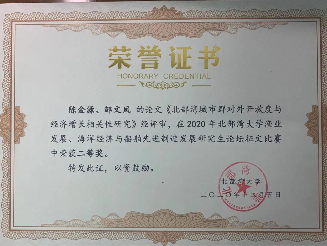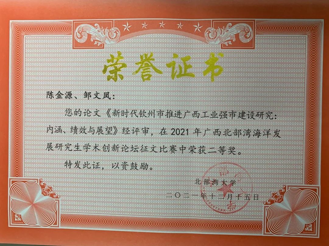 论文获2021年广西北部湾海洋发展研究生学术创新论坛征文比赛二等奖