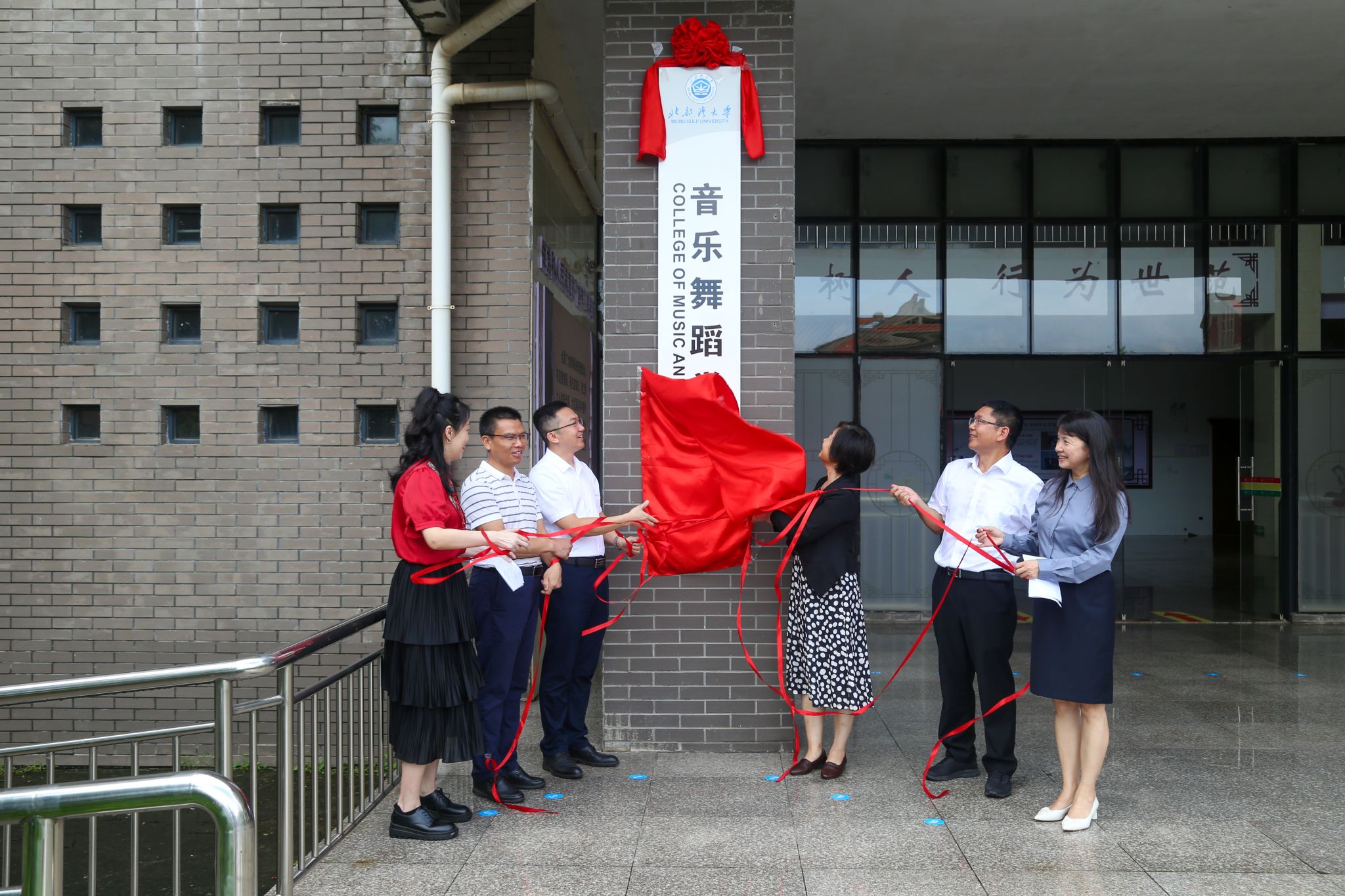 陈磊副书记、陈丹副校长及相关部门领导共同为音乐舞蹈学院揭牌